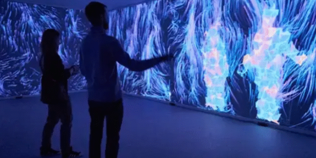 A: It’s a technology that uses projection and sensing systems to allow visitors to interact with images, animations, or media on walls in real-time.