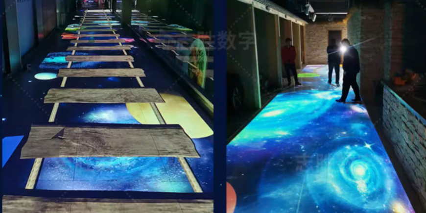 Outdoor interactive floor projection is a system that turns walkways, squares, and activity zones into a responsive “digital ground screen.” People don’t just watch visuals—they trigger them by stepping, running, and moving.
